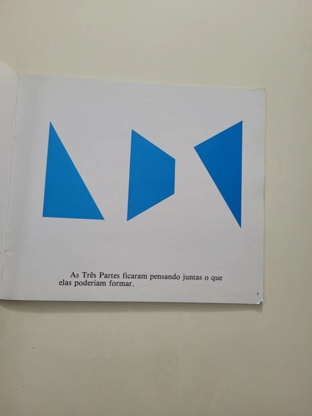 Três partes cansadas de formar uma casinha resolvem sair pelo mundo procurando novas formas e cores.
