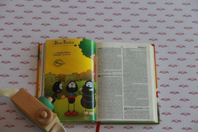 A edição reúne algumas páginas coloridas com os personagens da Turma do Smilingüido e texto em destaque com referência bíblica e uma reflexão.