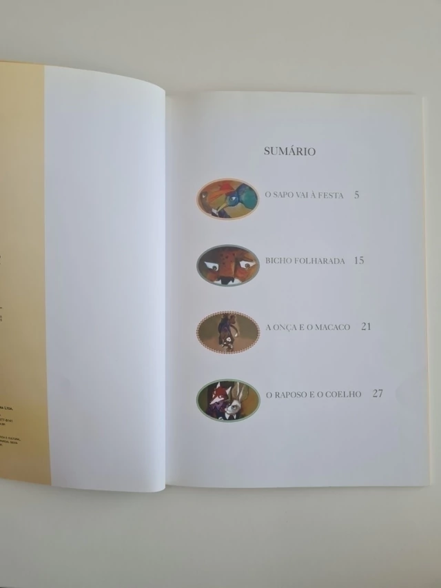 O Bicho Folharada e outros espertinhos reúne quatro narrativas curtas sobre o relacionamento, nem sempre amistoso, entre alguns Informativos > Animais. Na primeira História, quem cria uma grande confusão é o sapo. Uma certa andorinha chegou espalhando a notícia de uma festa no céu. Todos que sabiam voar estavam convidados. Do pequeno Beija-Flor ao majestoso Flamingo. E, de fato, as aves se animaram. Sentiram-se lisonjeadas. Quem não podia ir, lamentava. Muitos se roíam de inveja. A Arara achou muita graça quando ouviu o Sapo dizer que também ia. Isso não era possível. O que nenhum deles sabia era que o Sapo tinha um plano. O eterno conflito gerado pela esperteza da raposa e da onça em relação aos outros Informativos > Animais também é assunto dessas Histórias bem-humoradas e construtivas de Mary e Eliardo França.