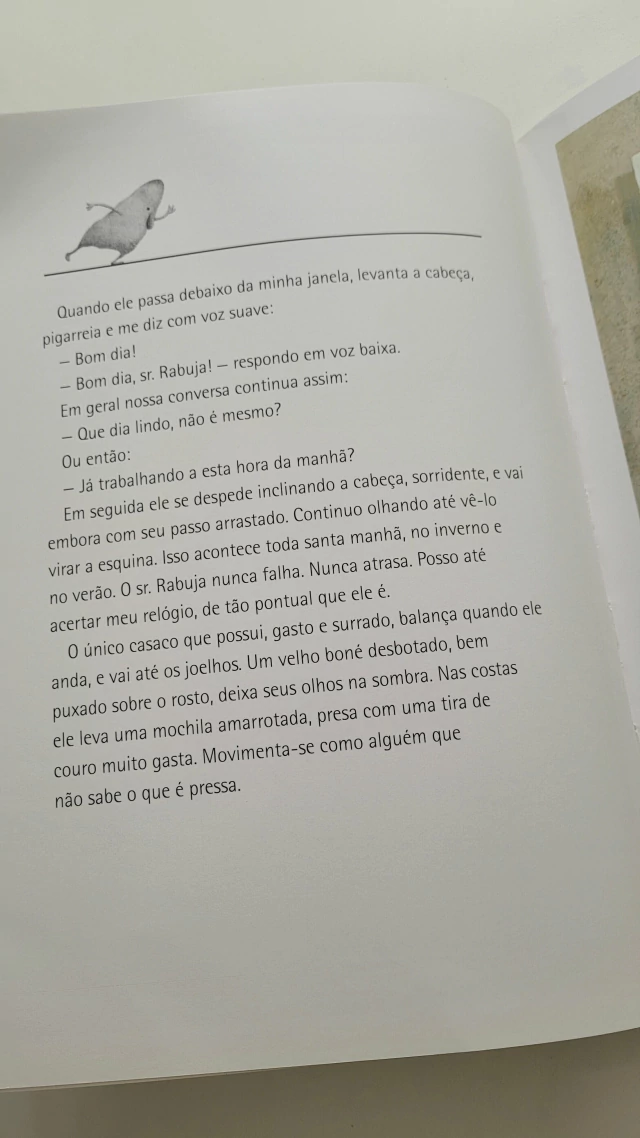 Este livro conta a história de um velhinho chamado Sr. Rabuja que todas as manhãs percorre as ruas recolhendo todo o tipo de pensamentos. Pensamentos bonitos, feios, barulhentos, silenciosos, inteligentes, bobos, compridos, curtos. O Sr. Rabuja planta os pensamentos, que se transformam em flores e depois saem voando, colorindo o céu. Ele faz isso para que os pensamentos se renovem e, assim, nunca deixem de existir.