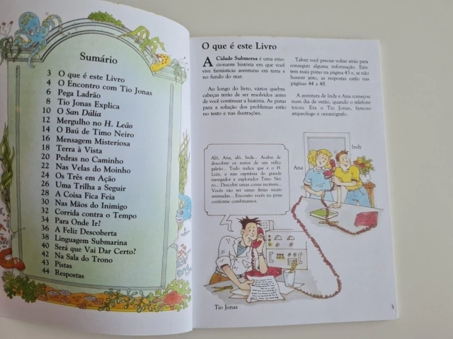 Esse livro traz uma emocionante aventura, com divertidos e intrigantes enigmas para o leitor resolver, fazendo com que participe ativamente da trama. De modo divertido, ajuda a desenvolver a perspicácia, a acuidade visual, o raciocínio lógico e a observação. A descoberta de um velho galeão naufragado faz com que um famoso arqueólogo e seus dois jovens sobrinhos mergulhem numa emocionante aventura. Mil e uma divertidas emoções esperam por quem mergulha em busca da lendária cidade.