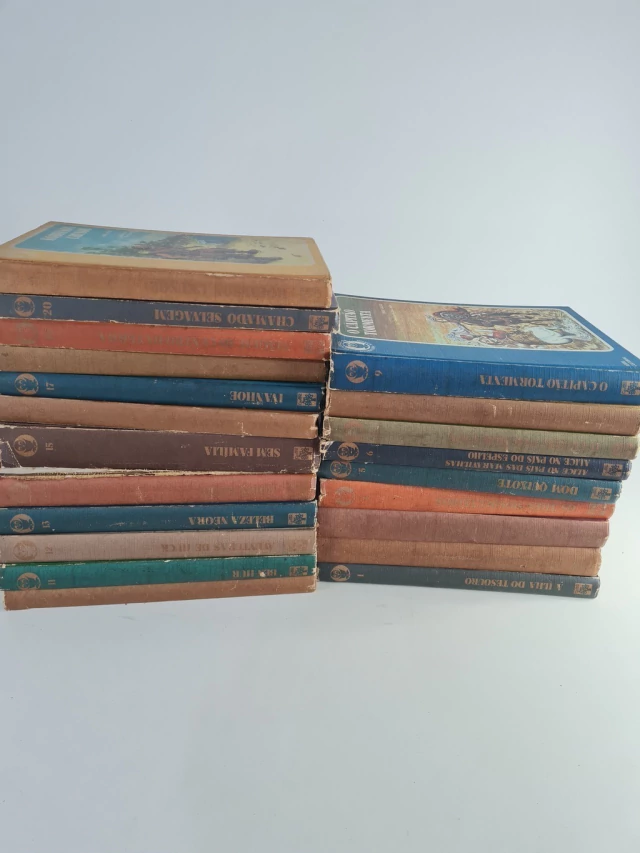 Títulos contidos na coleção: Ben-Hur; Aventuras de Huck; Odisséia; O Capitão Tormenta; David Copperfield; O Último dos Moicanos; Alice no País das Maravilhas - Alice no País do Espelho; Dom Quixote; Os Três Mosqueteiros; Aventuras de um Petroleiro; Robinson Crusoé; Chamado Selvagem; Viagem ao Centro da Terra; Ivanhoé; Mulherzinhas; O Conde de Monte Cristo; Aventuras de Tom Sawyer; A Ilha do Tesouro; Robin Hood; Tom Jones; Oliver Twist; O Pequeno Lorde; A Rapaziada de Jô; Nevada; Moby Dick.