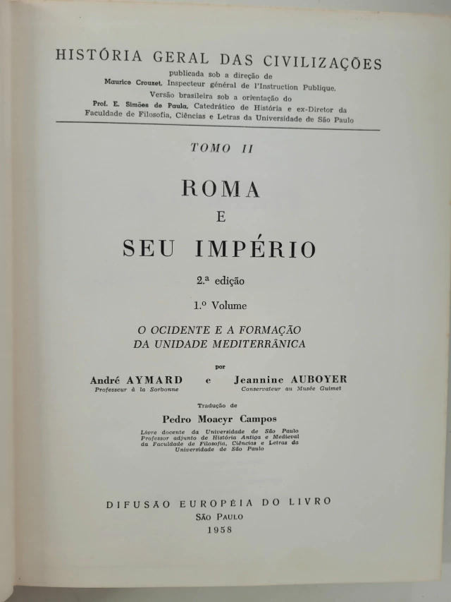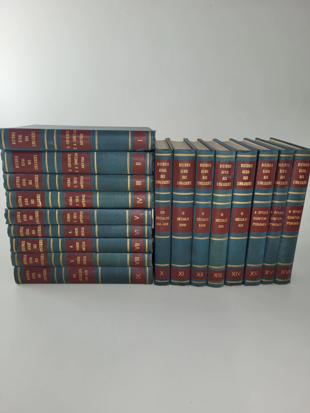 Volume I O Oriente e a Grécia Antiga Civilizações Imperiais do Oriente Volume II O Oriente e a Grécia Antiga O Homem no Oriente Próximo Volume III Roma e Seu Império O Ocidente e a Formação da Unidade Mediterrânica Volume IV Roma e Seu Império As Civilizações da Unidade Romana Volume V Roma e Seu Império, Tomo III As Civilizações da Unidade Romana / A Ásia Oriental do Início da Era Cristã ao Fim do Século II Volume VI A Idade Média A Expansão do Oriente e o Nascimento da Civilização Ocidental Volume VII A Idade Média O Período da Europa Feudal, do Islã Turco e da Ásia Mongólica Os Tempos Difíceis (Início) Volume VIII A Idade Média Tempos Difíceis (Fim) Volume IX Os Séculos XVI?XVII Os Progressos da Civilização Européia Volume X Os Séculos XVI?XVII A Europa e o Mundo Volume XI O Século XVIII O Último Século do Antigo Regime Volume XII O Século XVIII A Sociedade do Século XVIII Perante a Revolução Volume XIII O Século XIX O Apogeu da Civilização Européia Volume XIV O Século XIX As Civilizações Não Européias / O Limiar do Século XX Volume XV A Época Contemporânea O Declínio da Europa / O Mundo Soviético Volume XVI A Época Contemporânea O Mundo Dividido Volume XVII A Época Contemporânea O Desmoronamento dos Impérios Coloniais / O Surto das Ciências e das Técnicas