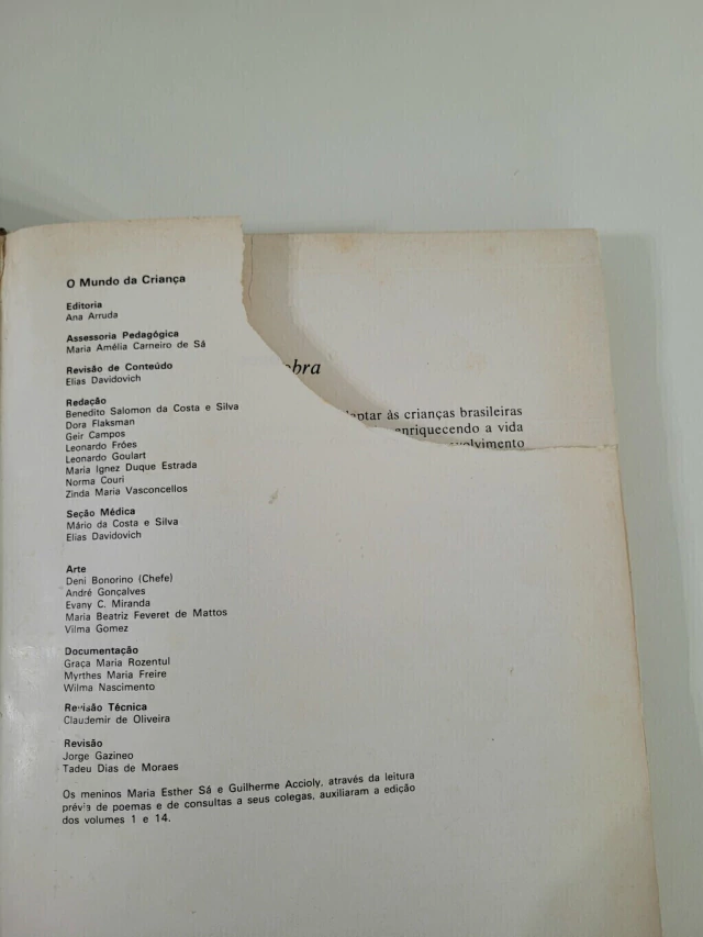 1- poemas e Rimas; 2- histórias contadas e outros poemas 3- histórias de fadas 4- nossos amigos animais e aventuras 5- a vida em vários países 6- grandes homens e feitos famosos 7- a natureza 8- aprendendo a brincar 9- ciência e industria 10- a arte ao alcance da criança 11- música para crianças 12- você e sua família 13- seu filhinho 14- a escola na vida da criança 15- a criança no mundo moderno