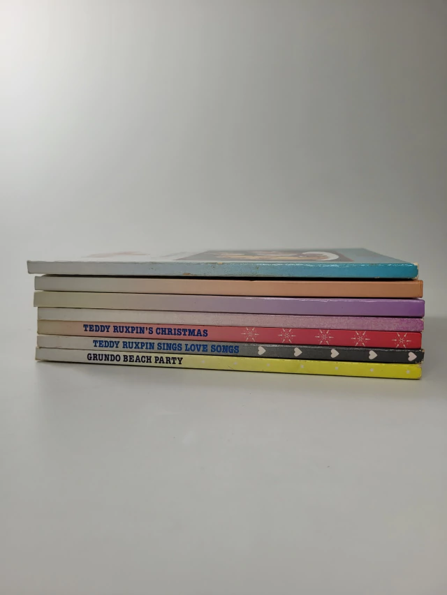 A collection of Teddy Ruxpin books about values and friendship featuring Teddy and the others: The Missing Princess, You've Got to Take Good Care of You; Grundo Beach Party, Sun and Sand With Friends Can Be Fun; Teddy Ruxpin Sings Love Songs, A Special Collection of Teddy's Favorites; Teddy Ruxpin's Christmas, A Musical Celebration; All About Bears, When is a Bear Not a Bear?; The Wooly What's - It, Learning Can Be Fun!; The Airship, Discover a Whole New World