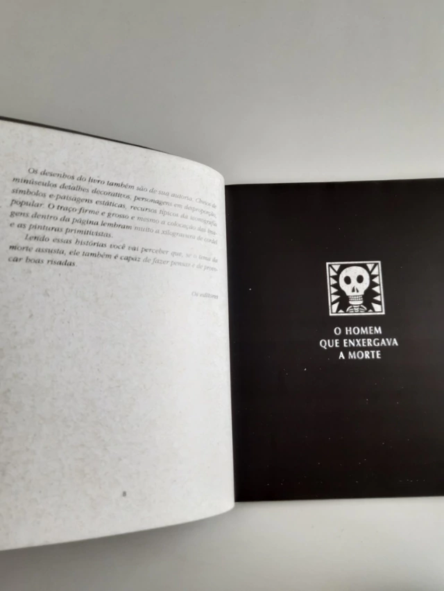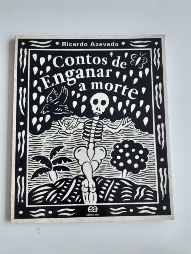 Desde a década de 198, Ricardo Azevedo tem publicado livros infantojuvenis e pesquisado os contos populares para recontá-los a sua maneira. Assim é que da leitura de várias versões da mesma história, ele cria a sua. Aumenta o ponto do conto. Este livro é composto de quatro histórias nos legada pelos portugueses. Elas tratam dessa situação em que uma personagem tendo sido visitada pela Morte tenta adiar a sua partida, seja por meio da negociação dos prazos ou pregando uma peça à Morte. É nessas idas e vindas da Morte e nos logros que estão a graça de cada conto. No entanto, sabemos que ela é inevitável e ainda que mais tarde, a Morte cumpre o seu designio. As ilustrações coloridas inspiradas nas xilogravuras do cordel são como um retrato dos principais momentos de cada conto.Resenha Especializada - A Taba