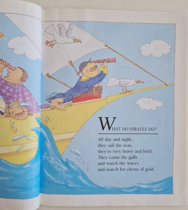 Come along for a shiver-me-timbers sea voyage and find out all about pirates! Any young pretend pirate will want to know such things as how you get to be a pirate, how pirates capture a ship, and, of course, whether those rascally oceangoers take baths. The stars of this book are a crew of lovable fellows, jauntily painted in bright, splashy colors and brought to life in delightfully funny verse.