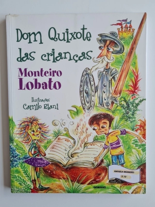 Emília invade a biblioteca de Dona Benta. Vê um livro na estante e pede a ajuda do Visconde de Sabugosa para tirálo dali, mas sem querer derruba o enorme volume e esmaga seu cúmplice. O livro é um belo exemplar de Dom Quixote de la Mancha. Após o acidente Dona Benta resolve lêlo aos netos e à boneca. No começo, todos estranham aquela linguagem difícil, e então a avó, paciente e carinhosa, resolve recontar tudo com palavras suas e de Tia Nastácia e minhas também ? e de Narizinho?e de Pedrinho?e de Rabicó para que todos entendam e aproveitem ao máximo aquela aventura. Dom Quixote é um nobre espanhol que, movido pelos livros que lia e pela força da imaginação, busca levar uma vida heroica. Veste uma armadura, monta em seu velho cavalo e, acompanhado de seu fiel companheiro Sancho Pança, vai enfrentar o mundo, seus moinhos de vento, seus inimigos mortais, em honra de sua donzela Dulcineia. Grande personagem da literatura, o cavaleiro da triste figura marcou a vida de seus leitores e influenciou todos os grandes escritores, entre eles Lobato, um grande frequentador dos clássicos. Esta é uma história universal, para todos os leitores de todos os tempos. E especialmente este Dom Quixote que o leitor tem