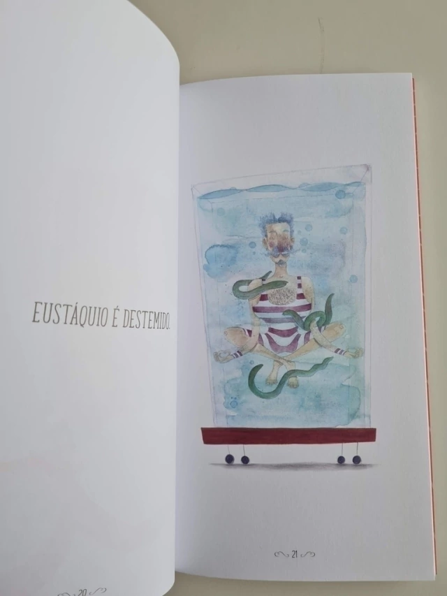 Eustáquio, o mágico magnífico é um livro-brincadeira. Nele, o autor Alexandre Rampazo fez o que faz de melhor: brincar com palavras, imagens e com a materialidade do livro, extrapolando todos os seus limites. Neste livro Rampazo nos apresenta a um mágico especial, único e magnífico: Eustáquio! Ele faz um show de mágica particular para cada leitor e, em um virar de páginas, ZAZ! O leitor se torna ajudante de toda a magia, participante ativo da história.