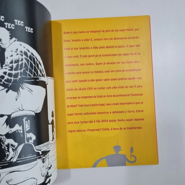 Quem é que nunca se imaginou na pele de um super-herói? Ter, por exemplo, uma visão de raio X para enxergar as respostas da lição no livro da professora? Gostou da ideia? Pois agora seu sonho pode se tornar realidade! Este livro vai ensiná-lo a criar seu personagem (incluindo um grito de guerra), que disfarce usar, como guardar sua identidade secreta e por que jamais escolher um papagaio como companheiro de aventuras. Mas, antes de se decidir, é bom conhecer as curiosidades dos mocinhos que já existem. Afinal, seria o maior vexame sair por aí vestido de morcego, com a cueca por cima da calça, não é?