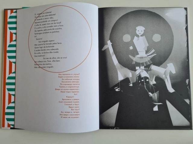 Um simples quarto frequentado por crianças criativas toma ares de circo e de teatro por onde desfilam os bichos anunciados nos versos do poeta russo Serguéi Tretiakóv. Quando surgem, visualizamos a montagem de uma cena feita com parcos recursos de papel, onde figuram bichos e crianças estilizados geometricamente. A cada virada de página, a ação evolui, para surpresa e encantamento do leitor. Serguéi Tretiakóv, autor dos versos de Imitabichos, e Aleksandr Ródtchenko, o ilustrador, são dois artistas emblemáticos que viveram sob as tensões da Revolução Russa. A expectativa do título se curmpre na leitura, mas é principalmente um convite para o leitor observar com atenção a montagem de cada cena fotografada (no uso da luz, na disposição dos bonecos, na construção de cada personagem) e capturar a técnica para montar a sua própria história. Resenha Especializada - A Taba