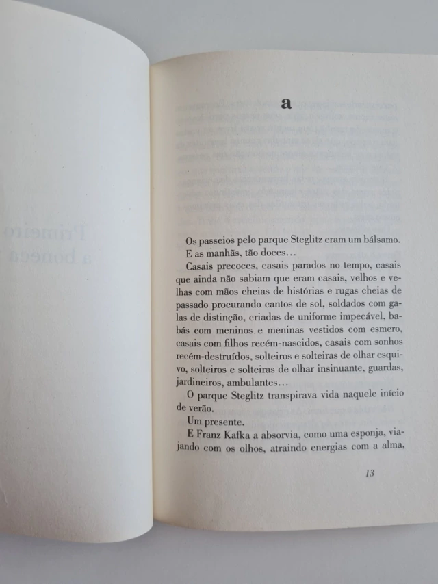 Um ano antes de sua morte, Franz Kafka viveu uma experiência singular. Passeando pelo parque de Steglitz, em Berlim, encontrou uma menina chorando porque havia perdido sua boneca. Para acalmar a garotinha, inventou uma história: a boneca não estava perdida, mas viajara, e ele, um carteiro de bonecas, tinha uma carta em seu poder que lhe entregaria no dia seguinte. Naquela noite, ele escreveu a primeira de muitas cartas que, durante três semanas, entregou pontualmente à menina, narrando as peripécias da boneca vividas em todos os cantos do mundo. Inspirado por essa história pouco conhecida de Kafka, contada por Dora Dymant, companheira do escritor na época, Jordi Sierra i Fabra recria as cartas nunca encontradas e que constituem um dos mistérios mais belos da narrativa do século XX.