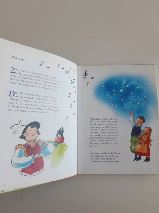 Wer kennt sie nicht, guten alten Kinderlieder aus Grobmutters Zeiten? Von "Alle Vögel sind schon da" über "Ein Männlein stehen?" - dieses bezaubernde Buch ist eine Fundrube der bekanntesten und beliebtsten Kinderlieder aller Zeiten. Zu jedem Lied finden Sie die Noten für Singstimme, die Griffe zur Gitarrenbegleitung und alle überlieferten Texte zum Mitsingen.