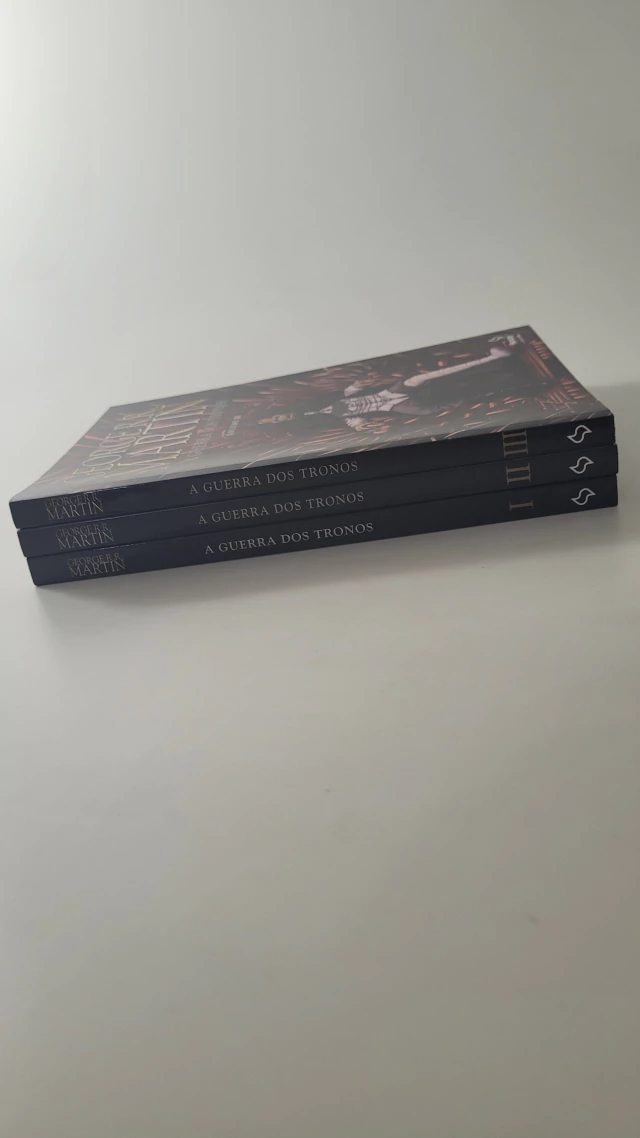 Nos três primeiros volumes desta saga épica, acompanhamos a ascensão e a queda de reis, o amadurecimento de personagens marcantes, e a crescente ameaça de uma guerra que não é apenas entre homens mas entre fogo e gelo. Com narrativa rica, reviravoltas impactantes e um mundo profundamente construído, A Guerra dos Tronos é uma jornada inesquecível pela luta pelo poder, pela sobrevivência… e pelo destino de um continente.