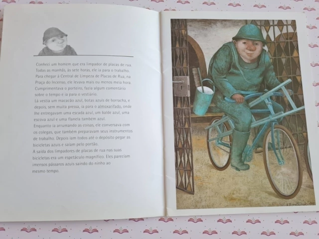 O limpador de placas de rua era um homem feliz. Gostava do que fazia, gostava de suas ruas e gostava de suas placas. E quando alguém perguntava o que gostaria de mudar em sua vida, respondia sem vacilar: Nada, absolutamente nada! Decerto tudo teria continuado assim se um belo dia uma mãe e seu filho não tivessem parado ao pé da escada azul...