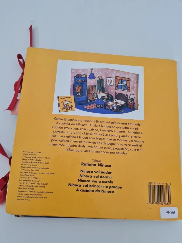 Quem já conhece a ratinha Ninoca vai adorar esta novidade: A casinha Ninoca. Um livro-brinquedo que para em pé, virando uma casa, com cozinha, banheiro e quarto. Armários e gavetas para abrir, objetos destacáveis para guardar e muito mais: uma ratinha Ninoca com braços que se movem, um suporte para colocá-la em pé e até roupas de papel para voce vesti-lá! E tem mais: dentro deste livro há um outro, pequenino, com mais idéias para voce brincar com sua casinha.