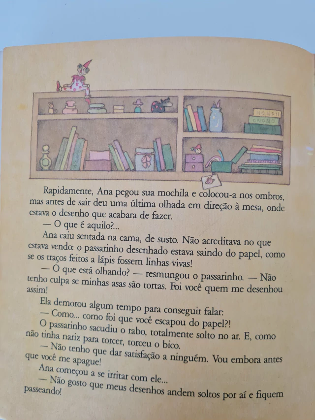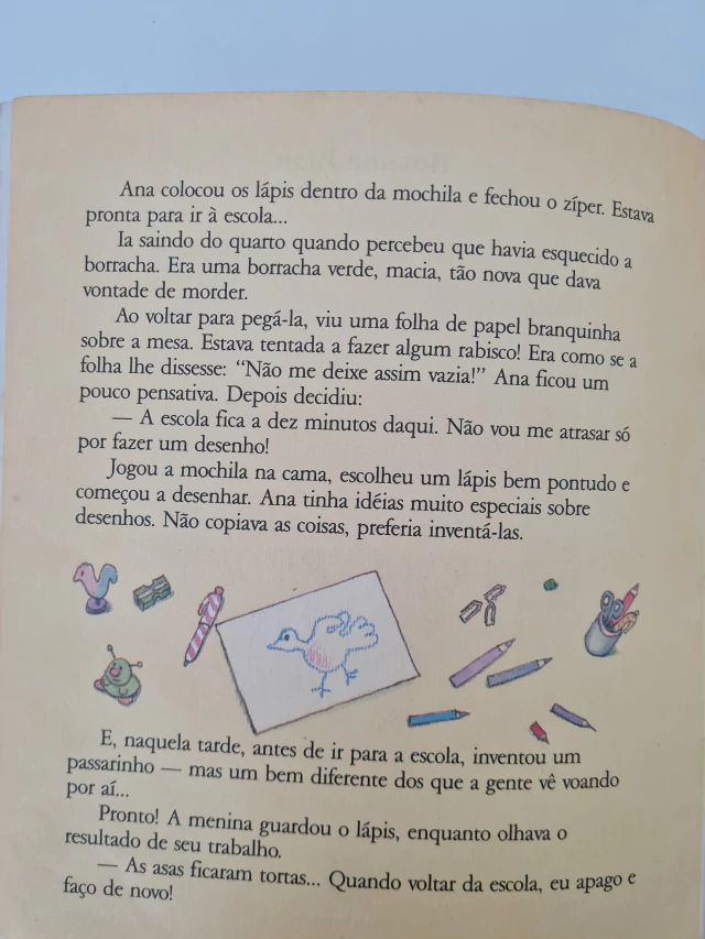 Quando sai de casa para o colégio, Ana nota que esqueceu a borracha e volta para pegá-la. Acha um papel em branco e não resiste: desenha um passarinho. Antes de deixar o quarto, resolve dar uma última olhada e... o pássaro está voando! Ao segui-lo, ela vai parar em uma cidade fantástica, onde lhe acontecem coisas extraordinárias.