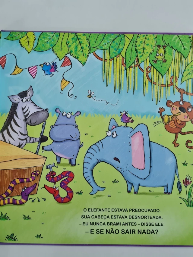 O elefante fica preocupado quando suga algo que entope sua tromba e teme não conseguir bramir no concerto da selva. Será que os outros animais conseguirão ajudar o elefante com a tromba entupida ou o concerto terá de acontecer sem ele? Descubra a res posta neste livro divertido!