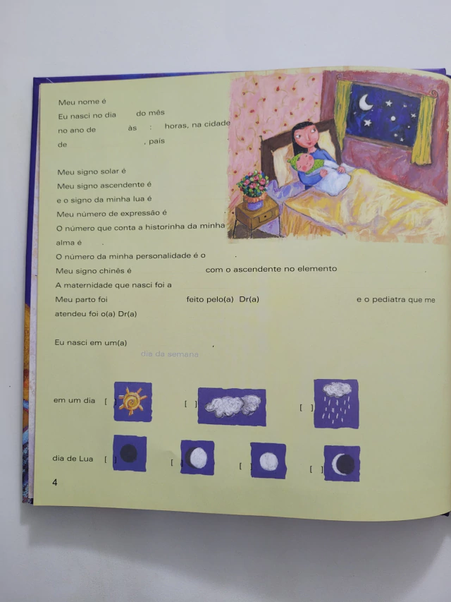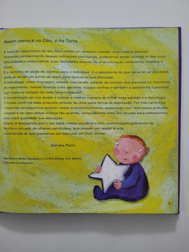 A astorlogia entrou na minha vida "devargazinho"; foi preenchendo espaços, ganhando terreno, tomando conta de cada canto do meu coração, colorindo minha vida com as cores da verdade, da confiança e do cresciemento interior. E desse bem tão grande, proporcionado por ela a mim, nasceu o desejo de que cada criança e cada mãe pudesse ter acesso a esta ferramenta de trabalho interior tão especial. Muitas alegrias, muitas tristezas são melhores compreendidas com o conhecimento da energia dos astros. O mapa astral é o nosso DNA celeste, a indicação dos elementos, o RG, e os trânsitos, o nosso cresciemento. Nossa intençaõ é que caminhemos juntos, interagindo com mais qualidade pela vida já que podemos ter acessos á linguagem universal: a dos astros. Todas as informações acessíveis através deste livro serão como uma bússola e uma lanterna na condução da educação do seu bebê.