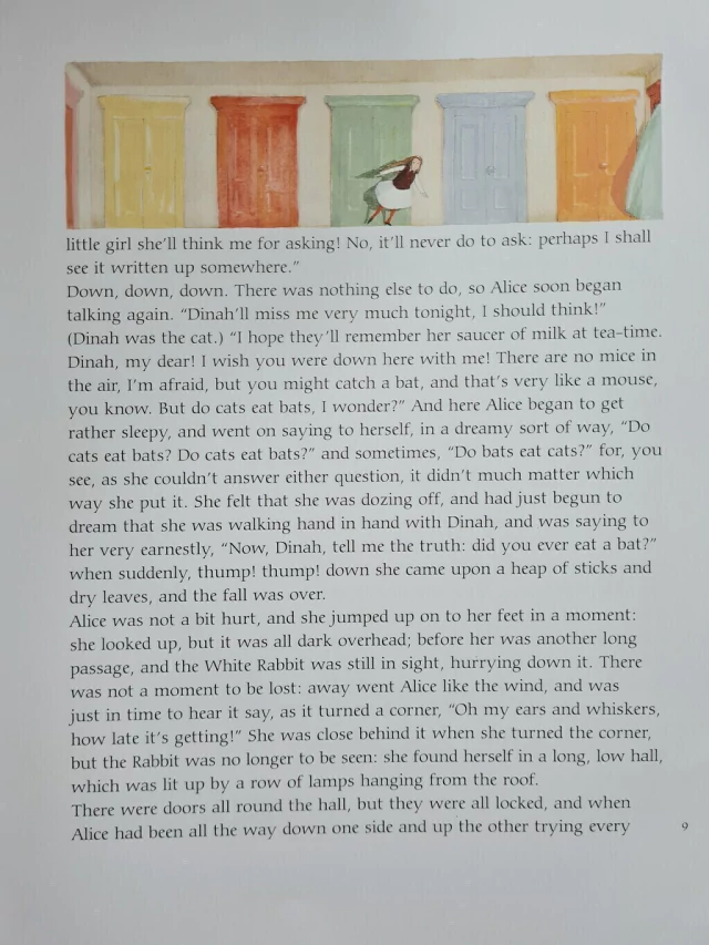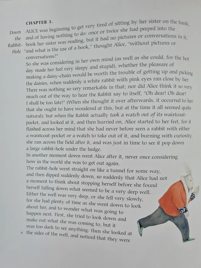 On a drowsy afternoon by a riverbank, a young and distracted Alice follows a rabbit into a fantastical underground world that grows curiouser and curiouser. Dared, insulted, amused, and threatened by a succession of anthropomorphic creatures, the indomitable Alice falls deeper into a swirl of the imagination where logic has no place.