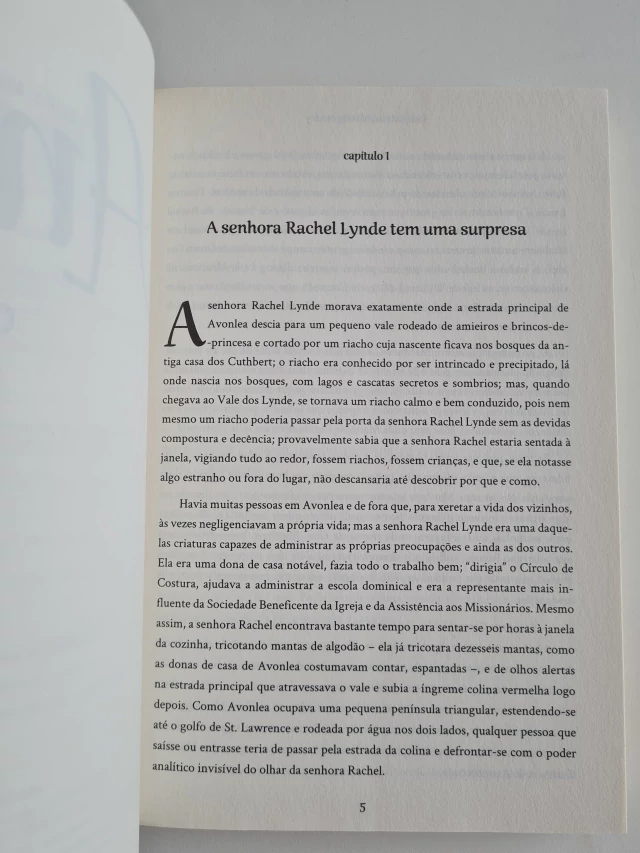 Um mal-entendido leva a pequena órfã Anne para a fazenda Green Gables. Falante e vivaz e dona de uma mente cheia de imaginação, essa garotinha de apenas 11 anos mudará o rumo da vida dos irmãos Cuthbert e de todos do povoado Avonlea. Mas não é só de histórias que este livro é construído. Anne não só irá mostrar a todos que a vida pode ser mais bela se assim a imaginarmos, como também nos guiará por caminhos em que os pilares essenciais para uma boa convivência são erguidos por pequenas atitudes e pela aprendizagem e troca diárias com aqueles que estão ao nosso redor. Respeito, compaixão, honestidade, amor e amizade são alguns dos ensinamentos que a jovem Anne nos passa através de suas enrascadas, aventuras e histórias. Escrita no inicio dos anos 1990, esta obra continua sendo um ícone da literatura infanto-juvenil, que agrada não só aos pequenos, mas a adultos também, e já foi lida por milhares de pessoas em todo o mundo.