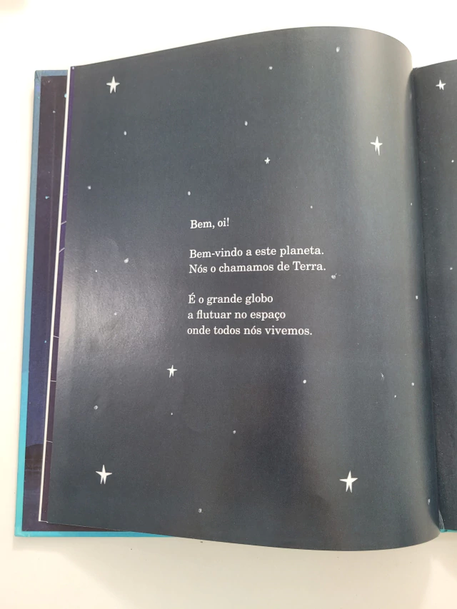 Em Aqui estamos nós, Oliver Jeffers nos convida a refletir sobre o imenso planeta que nos acolhe e, principalmente, sobre a vida que levamos nele. Assumindo a voz de um pai que está conversando com seu filho recém-nascido, situação real que inspirou a escrita do livro, o autor gentilmente nos apresenta o planeta sob diversos pontos de vista. Assim, com pequenos conselhos que valorizam a vida, o carinhoso pai repassa ao filho singelas e divertidas lições de sobrevivência na Terra. E, entre tantas importantes reflexões, uma delas com certeza ficará mais forte na mente do jovem leitor: não estamos sozinhos aqui. Como uma gota no oceano, somos apenas um entre os bilhões de seres vivos que vivem sobre a Terra. Assim, fica fácil compreender por que partilhar, tolerar e respeitar são verbos fundamentais para o nosso manual de sobrevivência!