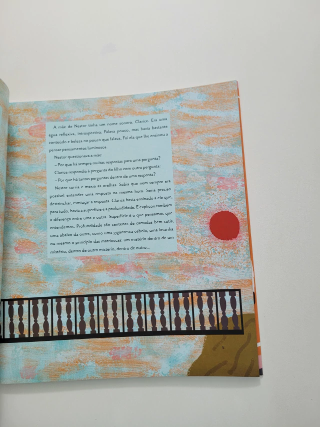 Nestor quer desvendar o que há por dentro de tudo. Quer saber se os seus sentimentos são feitos de camadas. Felizmente, Nestor conta com a sutileza de Clarice, sua mãe com a força de Nicodemos, seu pai e com a sabedoria e inteligência de Arquimedes,seu professor. Com o apoio dos três, Nestor mergulha nas sutis camadas de seus pensamentos.