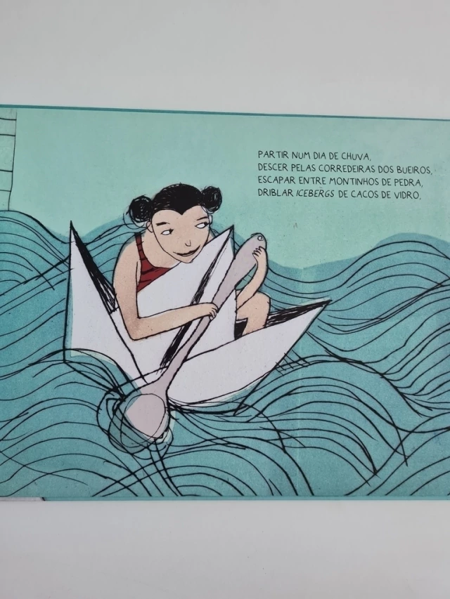 Um barco de papel navega nas águas da banheira para corredeiras mundo afora. A bordo dele, uma menina embarca na imaginação e desvia de icebergs de cacos de vidro, montinhos de areia, tempestades... No coração, ela carrega algo muito mais forte: carinho. O barco de papel precisa chegar ao seu destino a pessoa especial levando o sentimento que não para de crescer. O texto poético de Jorge Luján transporta o leitor por uma aventura emotiva. As ilustrações de Julia Friese mostram a menina enfrentando a ferocidade da água ao lado de um coelhinho, um pato e milhões de barquinhos de papel.