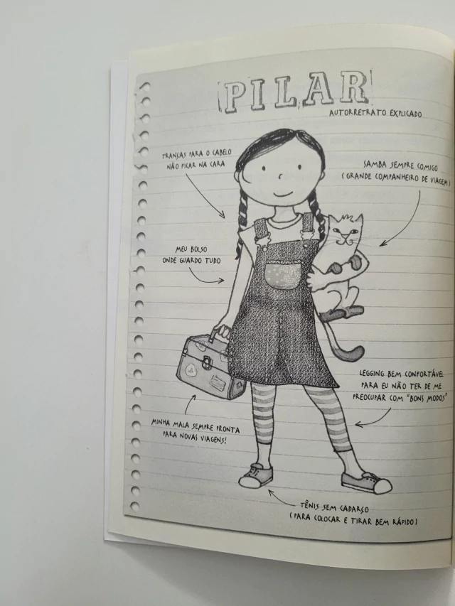 Olá, amigos, Voces também gostam de viajar, escrever e inventar? Neste caderno, voces podem criar suas própias viagens, cheias de personagens incríveis. Podem também desenhar, colar fotos e lembranças, fazer listas de favoritices... E se divertir com uma cartela de adesivos supercoloridos!