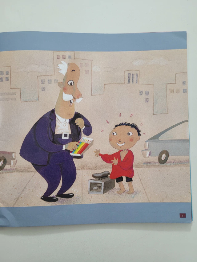 A Caixa de Lápis de Cor é uma narrativa visual ao mesmo tempo poética, realista e divertida. A história se passa em uma cidade grande. Seu personagem principal é um pequeno engraxate que recebe uma caixa de lápis de cor como pagamento por um trabalho. Encantado com os lápis, o menino desenha uma paisagem, na qual acaba literalmente mergulhando. Depois de interagir intensamente com elementos presentes no desenho, o garoto volta à realidade e tem uma idéia que torna o seu cotidiano e a própria cidade em que vive mais coloridos.