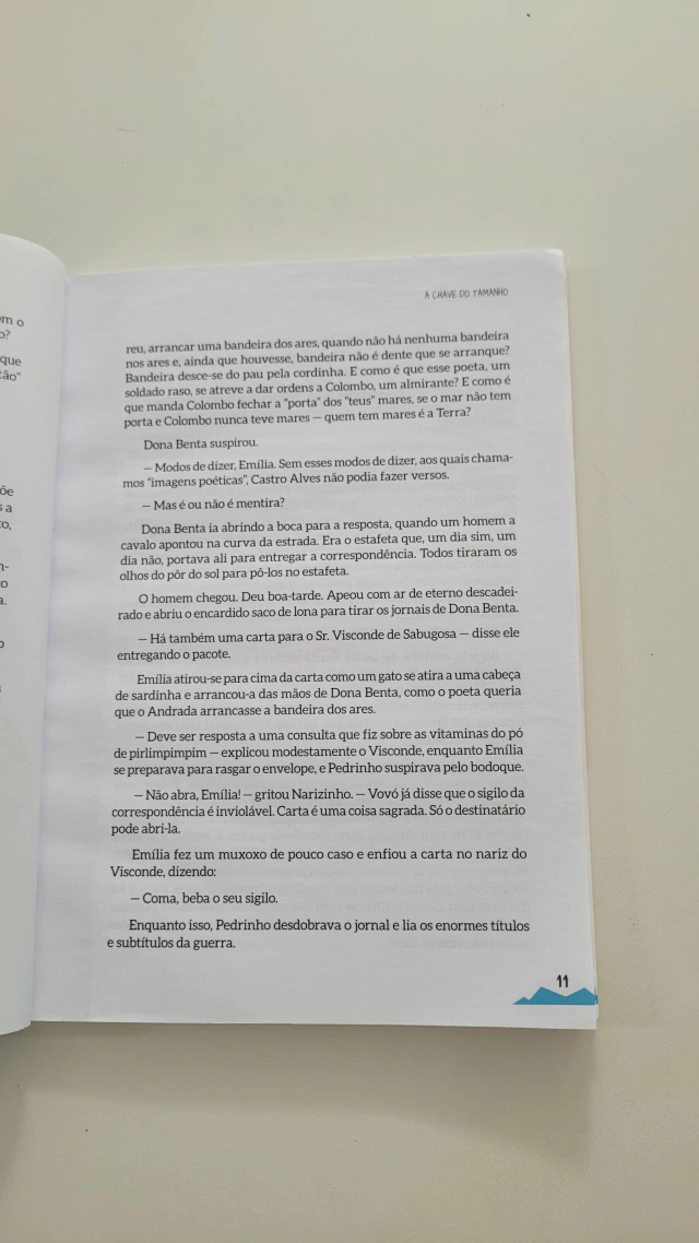 Diante das notícias de guerra vindas da Europa, Dona Benta fica apreensiva sobre o futuro da humanidade. Todos no sítio se sentem inpotentes, menos Emília, que sempre encontra um jeito de resolver os piores problemas. Sempre? Bem, dessa vez ela decide desligar a chave da guerra, mas se atrapalha e acaba baixando a chave do tamanho. As pessoas são reduzidas a poucos centímetros de altura, não maiores que insetos. Lobato retrata, nesta aventura, a insignificância do homem diante da natureza e o obriga a se adptar a uma nova realidade, na qual dinheiro e poder nada valem. "Ou acabo com a guerra, e com esses ódios que estragam a vida, ou acabo com a espécie humana", diz sabiamente a bonequinha em sua tentativa de salvar o mundo.