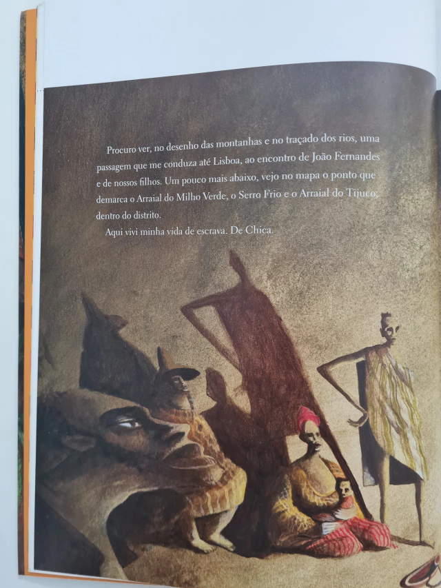 Em Chica e João, Nelson Cruz registra uma de nossas mais polêmicas passagens históricas: o casamento de Chica da Silva com o ouvidor João Fernandes de Oliveira. Apaixonado, João fez da ex-escrava uma rainha, em poesia, construiu para ela um castelo e um mar. Mas a força da política fez com que ele se tornasse um dos principais expoentes do Movimento da Inconfidência, separando-se da esposa por um longo exílio, em que foi acompanhado pelos filhos do casal. Como se adentrasse na mente e no coração de Chica, Nelson conduz o leitor por seus pensamentos e devaneios durante o período em que esteve distante da família. Apesar de sua importância histórica, o autor optou por retratar Chica da Silva como uma mulher comum, apaixonada, que revive suas memórias. Baseadas em telas como as de Piero della Francesca, as ilustrações resgatam o ambiente do Brasil colônia, seguindo fielmente a topografia da região e a arquitetura de Diamantina do século XVIII, com suas igrejas e construções coloniais.