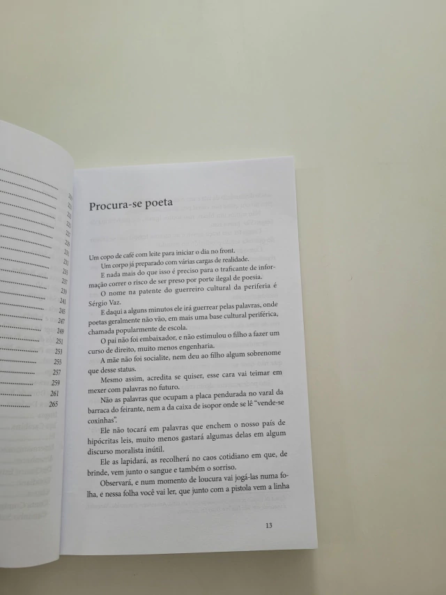 Uma obra que dá voz a população carente. Traz textos que retratam uma realidade dura, mas verdadeira. Versos que ilustram o cotidiano daqueles que "colecionam pedras" e que não possuem alternativa além de nutrir a esperança por dias melhores.