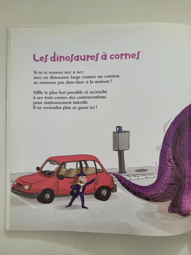 Qui n'a pas tremblé, de la tête aux pieds, á l'idée de tomber nez á nez avec um Stégosaure hérissé de piquants, um Diplodocus immense ou truffé d'astuces dévoile tout, tout, tout sur l'art de se débarrasser des dinosaures, des plus petits aux plus féroces! Ouf!
