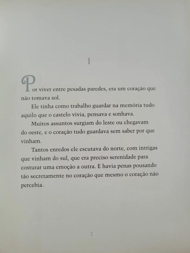 Por viver entre as sólidas paredes de um castelo, era um coração que não tomava sol. Ele tinha por tarefa guardar tudo aquilo que o castelo encontrava, pensava e sonhava. Tantos enredos surgiam do leste ou chegavam do oeste, que o coração os guardava sem saber por que vinham. E assim, o leitor é conduzido a um estado de espírito que será, acima de tudo, um toque de alvorecer.