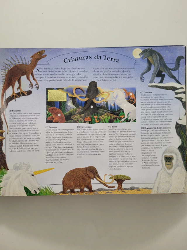 Faça uma viagem em terras lendárias distantes e além da imaginação para descobrir o mundo das criaturas míticas. Quando voce explorar as cenas em pop-up, ouvirá seres fantásticos ganharem vida. Ouça um lobisomem uivando, o grito da Fenix e o rugido de um poderoso dragão. Pronto para a jornada? Um mundo de maravilha mítica espera voce!