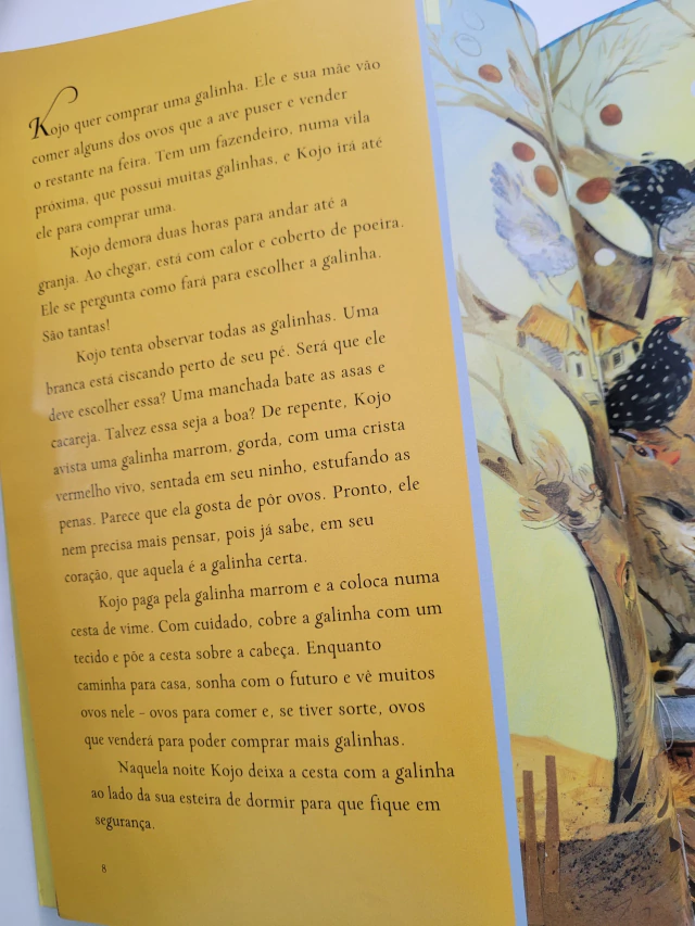 Baseado em fatos reais, o livro descreve a vida de Kojo, um pobre garoto que vivia com a mãe numa aldeia africana e que teve de largar a escola para ajudá-la em casa. Com a sobra das moedas de um empréstimo feito por sua mãe, Kojo compra uma galinha, podendo tanto vender ovos como comê-los. Após alguns anos, Kojo consegue voltar a estudar e chega à universidade. Com a ajuda de um novo empréstimo, decide montar uma granja. Passados alguns anos, a granja de Kojo se torna a maior de toda a África Ocidental.