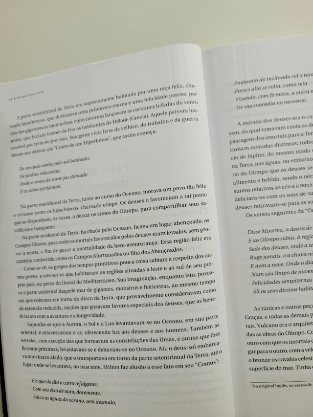 A guerra de Tróia, Hércules, Minerva, Midas, as divindades rurais, a mitologia oriental e nórdica, os druidas são alguns dos temas tratados nessa obra que conquistou milhares de pessoas. O leitor ficará fascinado com as mais encantadoras histórias e adquirirá conhecimentos indispensáveis à sua formação cultural.