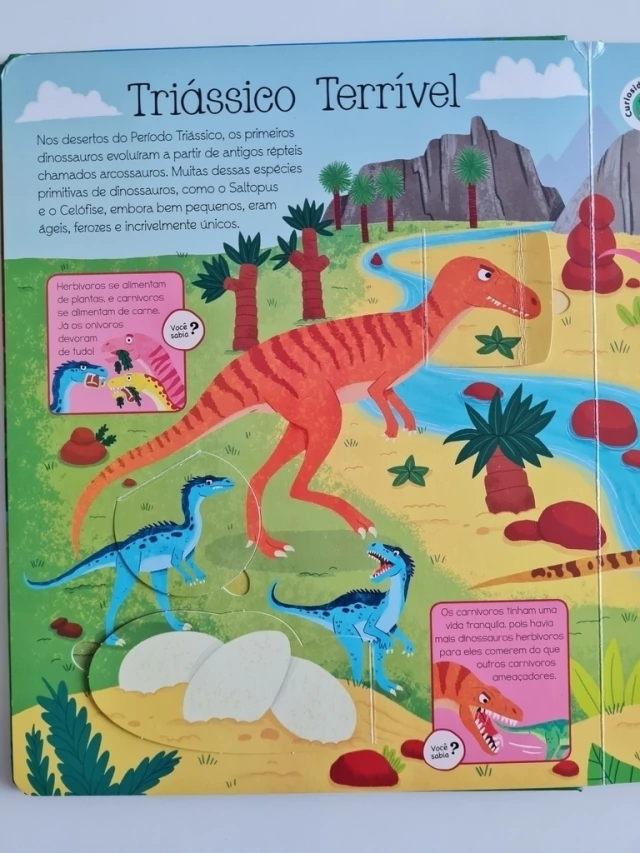 Você já se perguntou como os terríveis Tiranossauros usavam seus minúsculos braços? Quer saber quanta comida os Braquiossauros comiam todos os dias? Com este incrível livro, você vai andar no meio dos DINOSSAUROS. Divirta-se levantando as abas enquanto explora a vida PRÉ-HISTÓRICA na Terra.