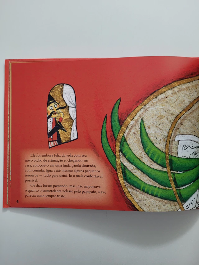 Era uma vez um comerciante que adorava seu papagaio e lhe dava de tudo: água, boa comida e até mesmo alguns tesouros. A ave, no entanto, não conseguia ser feliz vivendo em uma gaiola... Certo dia, o comerciante, que também era muito generoso, teve que fazer uma viagem á Índia e perguntou á sua ave de estimação o que ela queria de presente. Tudo o que ela lhe pediu foi que repassasse uma mensagem a um amigo seu, um papagaio indiano. Mas esse gesto aparentemente inocente acabou gerando um resultado surpreendente...