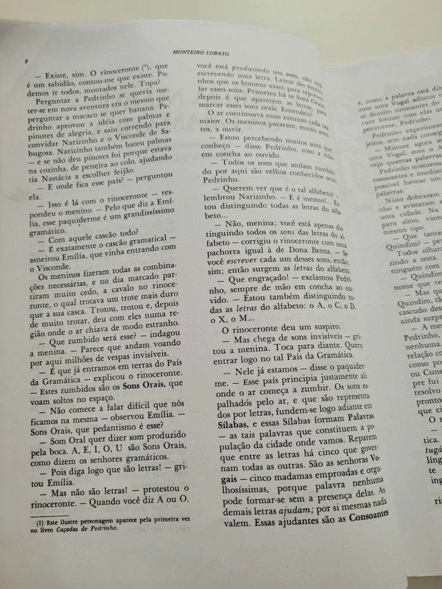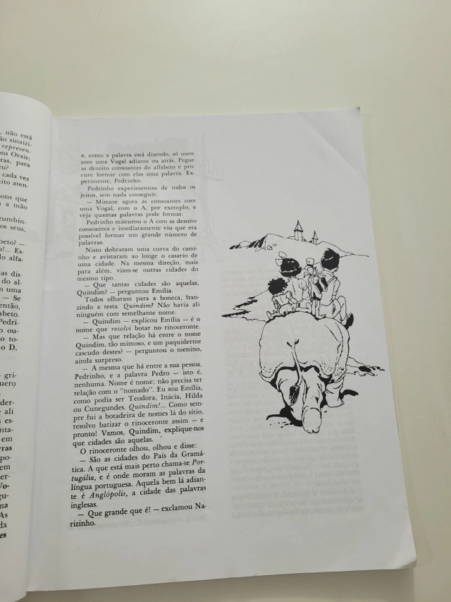 Em 'Emília no País da gramática', a língua é figurada como um país! O País da Gramática, povoado por sílabas, pronomes, numerais... Quindim, o rinoceronte, leva todo o pessoal do sítio para lá, e é ele quem tudo mostra e explica.