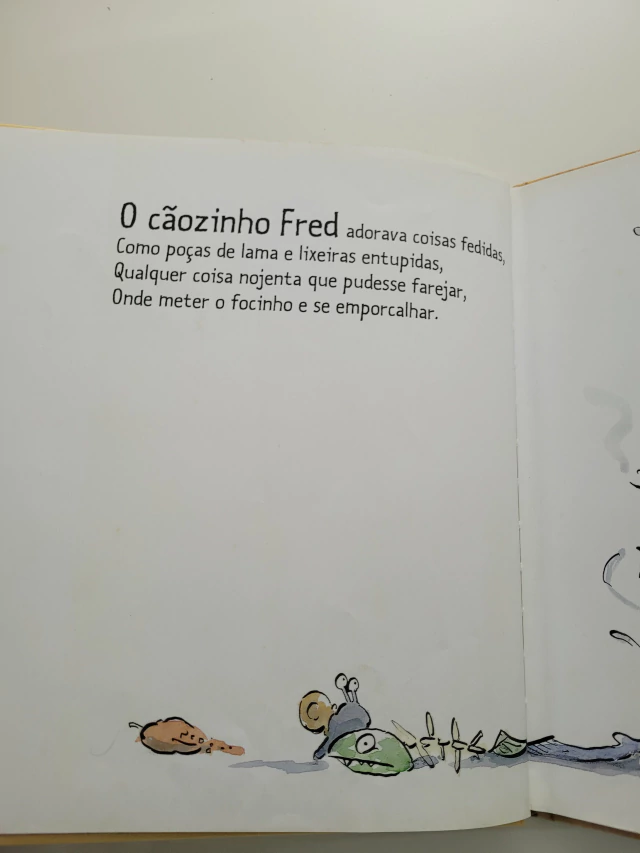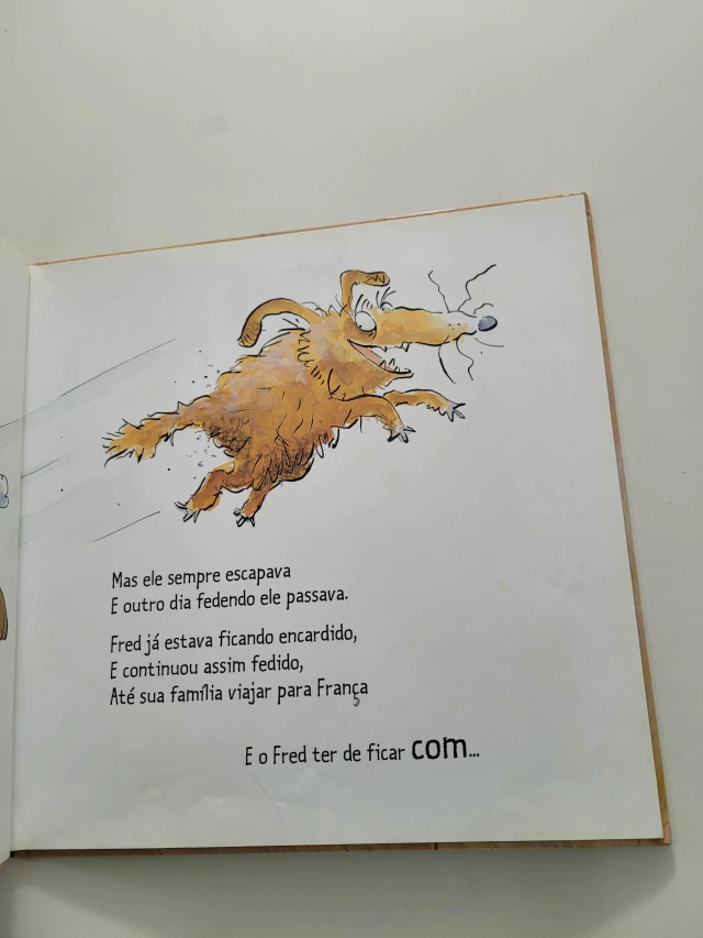 Rimas contam as travessuras de Fred Fedorento, um cachorro que adora brincar no meio da sujeira. Ele vive emporcalhado, fuçando as lixeiras e rolando na lama. Toda vez que alguém da família tenta dar um banho nele, a coisa fica ainda pior porque Fred sempre escapa, derrubando o balde e espalhando água e sabão por todo lado. Isso até a chegada da Tia-avó Branca, que tem mania de limpeza e não desiste de perseguir Fred para dar um banho nele. Fred e Tia Branca se envolvem em pega-pega, corre-corre, armadilhas e tocaias nessa aventura.