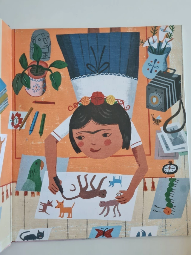 Frida Kahlo and Her Animalitos, written by Monica Brown and illustrated by John Parra, is based on the life of one of the world's most influential painters, Frida Kahlo, and the animals that inspired her art and life. The fascinating Mexican artist Frida Kahlo is remembered for her self-portraits, her dramatic works featuring bold and vibrant colors. Her work brought attention to Mexican and indigenous culture and she is also renowned for her works celebrating the female form. Brown's story recounts Frida's beloved pets--two monkeys, a parrot, three dogs, two turkeys, an eagle, a black cat, and a fawn--and playfully considers how Frida embodied many wonderful characteristics of each animal.