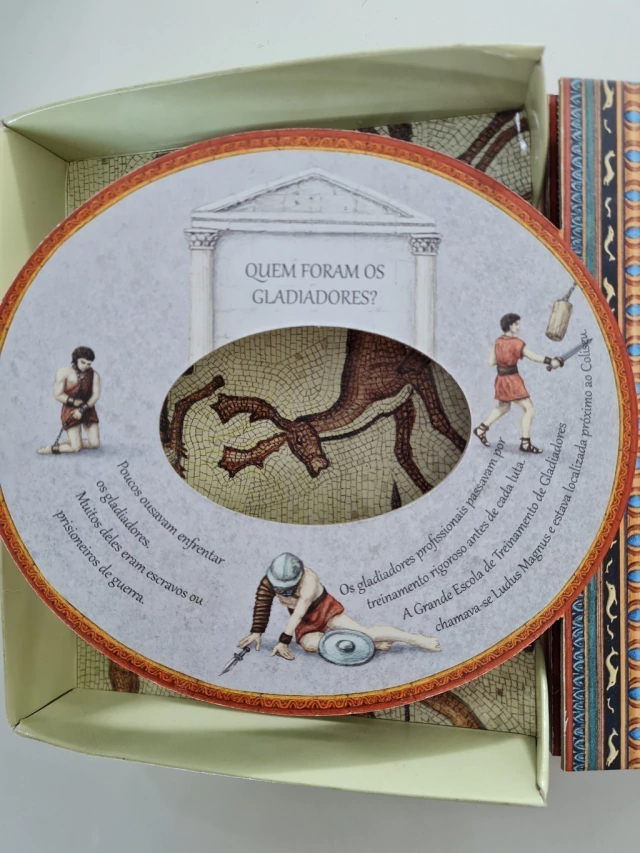 Este livro em forma do Coliseu romano oferece aos leitores os fatos e informações sobre os gladiadores. Como eles viveram, porque lutaram, quais armaduras e armas tinham e muito mais...