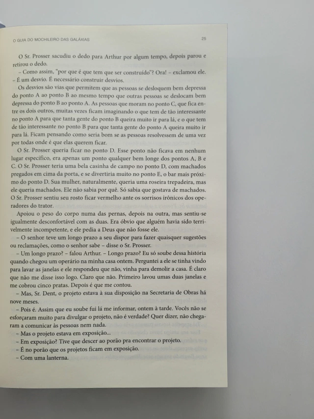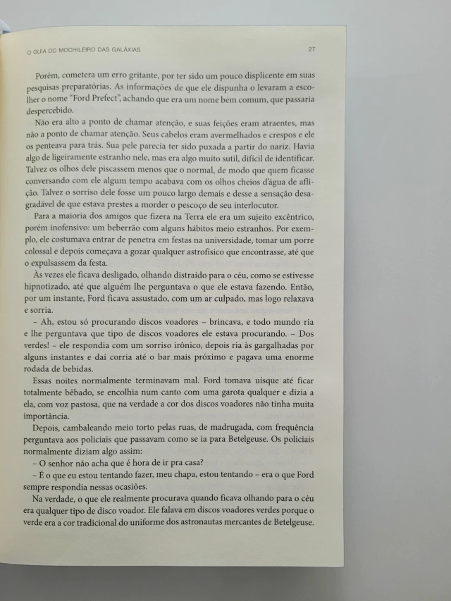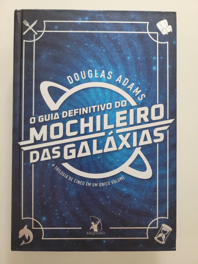 Com mais de 15 milhões de exemplares vendidos, a saga de Arthur Dent pela Galáxia conquistou fãs pelo mundo inteiro. O humor ácido e as tramas surreais de Douglas Adams se tornaram ícones de uma geração e seguem fascinando leitores de todas as idades. Reunindo todos os livros da série em uma edição de luxo, O Guia Definitivo do Mochileiro das Galáxias vai levar você por aventuras improváveis. Pegue sua toalha, divirta-se e não entre em pânico! O Guia do Mochileiro das Galáxias Segundos antes de a Terra ser destruída, Arthur Dent é salvo por Ford Prefect, um E.T. que fazia pesquisa para a nova edição de O Guia do Mochileiro das Galáxias. Pegando carona numa nave alienígena, os dois dão início a uma alucinante viagem pelo tempo e pelo espaço. O Restaurante no Fim do Universo Arthur Dent e seus companheiros viajam pela Galáxia em uma busca desesperada por algum lugar para comer. Depois de fazer a refeição mais estranha de suas vidas, eles seguem pelo espaço e acabam descobrindo a questão fundamental sobre a Vida, o Universo e Tudo Mais. A Vida, o Universo e Tudo Mais Após passar os últimos cinco anos abandona- do e sozinho na Terra pré-histórica, Arthur Dent é arrastado para uma nova mis- são: salvar o Universo dos temíveis e infelizes robôs xenófobos do planeta Krikkit.