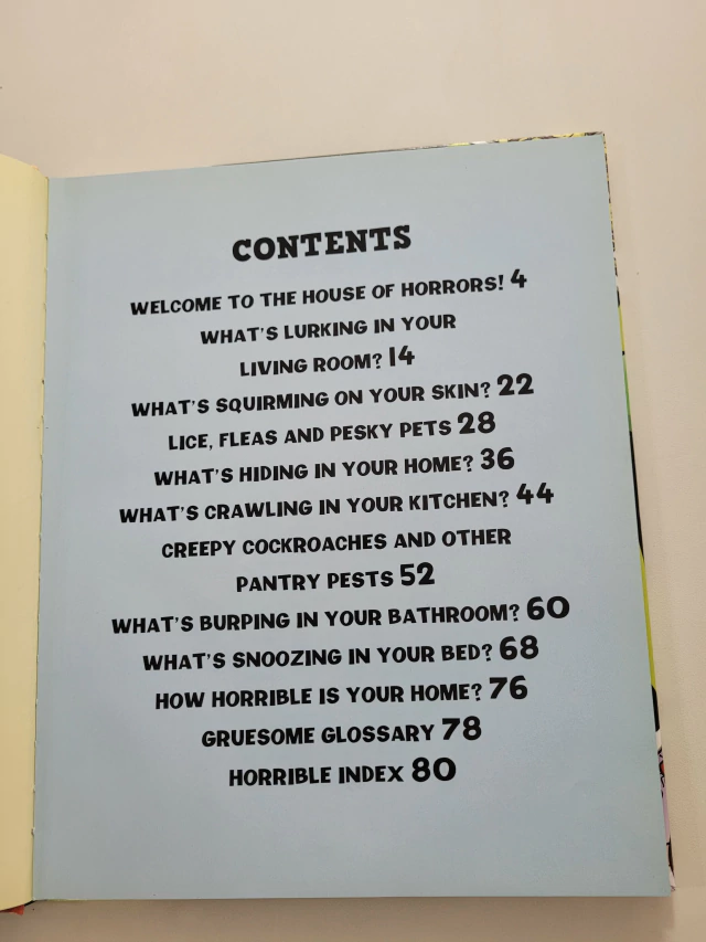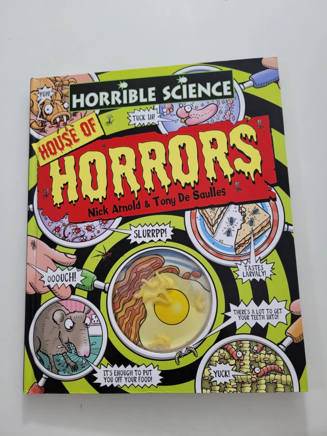 House of Horrors lifts the roof on the disgusting details of domestic life as only Horrible Science. Who lives in a house like this? Just about everyone. This book will have the cleanest of neat freaks running for cover when they discover what theyll never be able to get out of the carpet. House of Horrors dishes the dirt on the secret life of dust mites and parasitic pet poo. Features Innovative cover features a pouch of squishy realistic-looking maggots.