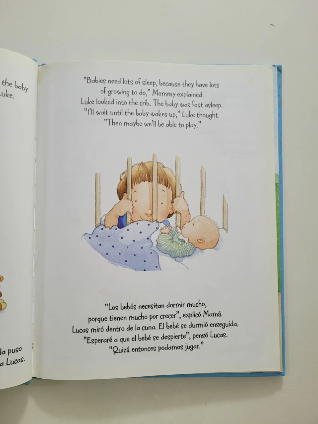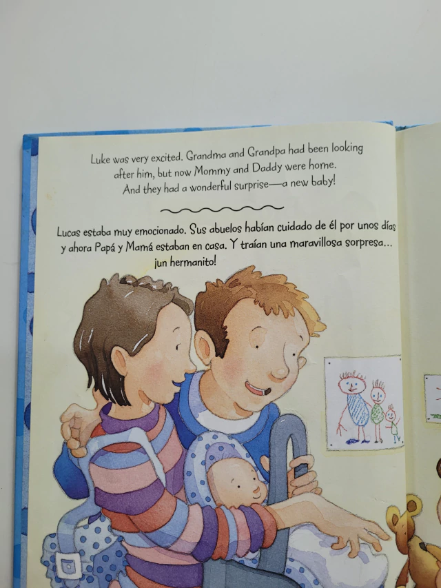 Inglês - Something exciting is happening in Luke's family ther's a new baby! At first, the baby is too small to play with Luke. Then Luke shows the baby all sorts of things, and discovers that being a biga brother is lots of fun. Espanhol - Algo emocionante está sucediendo en la familia de Lucas: ¡ha nacido un bebé! Al principio, el bebé es demasiado pequeño para jugar con Lucas. Así que él le muestra toda clase de cosas y descubre que ser el hermano mayor es muy divertido.