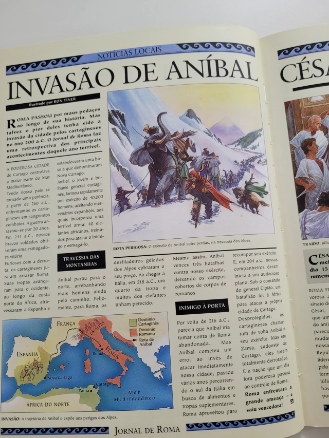 A história contada de uma forma como você nunca ouviu antes! - Descubra por que Aníbal atravessou os alpes; - Entre na arena da mrte com um gladiador; - Reviva a terrível destruição de pompeia; - Enfrente os fatos: Você acha que ter instrução é bom para você? Se os antigos romanos tivessem um jornal diário, com certeza seria o jornal de Roma, que está sempre repleto de importantes notícias locais e de outras regiões. Artigos fascinantes sobre a vida cotidiana, incluindo a moda e conselhos de como cuidar de uma fazenda, al´m de entrevistas e anúncios. De fato, tudo o que você espera de um jornal moderno e muito mais!