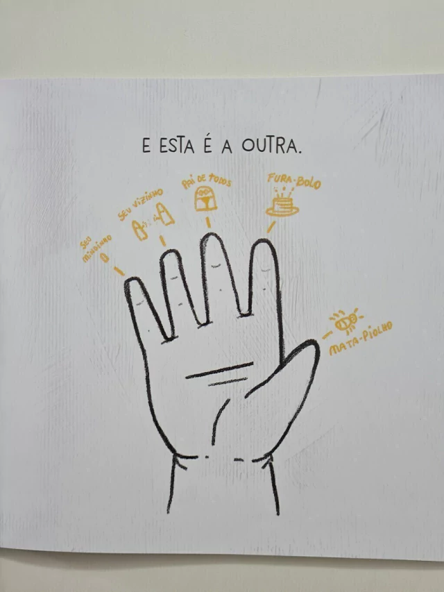 "Mãozinhas" é um livro para brincar. Com uma narrativa curta, o texto e as ilustrações fazem um convite para que os bebês interajam com o livro e com as suas próprias mãos, além da participação do adulto, que também vai amar acompanhar essaleitura divertida. Sabe o que as mãos mais gostam de fazer? Coceguinhas em você! Destacam-se as cores do livro: o branco, o preto e o amarelo, relacionadas ao desenvolvimento da percepção visual do bebê e também o fato do livro trazer uma surpresa par ao leitor adulto: o texto registrado na integra na 4ª capa, facilitando a interação entre o bebê e o livro. SOBRE O LIVRO Como não se emocionar com as mãozinhas de um bebê? Basta fazer esse questionamento para que os pais e educadores já relembrem de momentos felizes com os pequenos, e são essas boas memórias que queremos alcançar, além de inspirar novas experiências. Com imagens simples e clássicas, as ilustrações remetem a esboços desenhados por crianças, feitos a lápis em fundo branco. Apesar da simplicidade, quanto conteúdo! Os desenhos das mãozinhas abertas são um convite para que os pequeninos também interajam com as ilustrações, ao colocar as suas mãos nas imagens e reconhecê-las. O projeto gráfico também é todo pensado para os pequenos: com cores contrastantes e um formato quadrado e menorzinho, o livro é ideal para as mãozinhas desbravadoras. Essa interação, além da diversão, também acarreta no autoconhecimento dos pequenos, estimula o tato e amplia as possibilidades de manuseio do