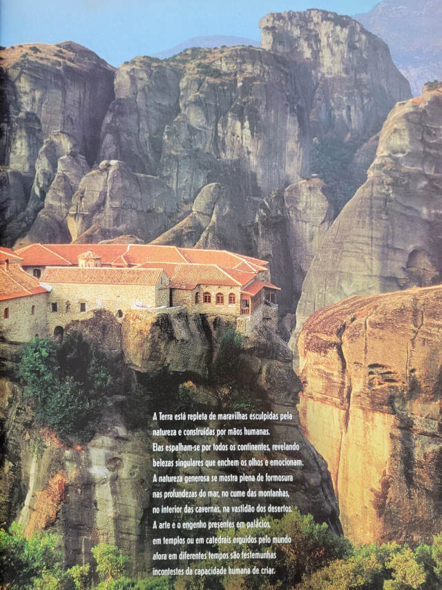 Esta obra é uma preciosa referencia das mais espetaculares construções já feitas pelo ser humano em todos os tempos e dos mais incríveis lugares esculpidos pela natureza ao longo de milhões de anos. São maravilhas de rara beleza que levarão o leitor a uma viagem pelo tempo e pelo espaço, com a ajuda da História, da Geografia, da Cultura e das Ciencias Naturais.